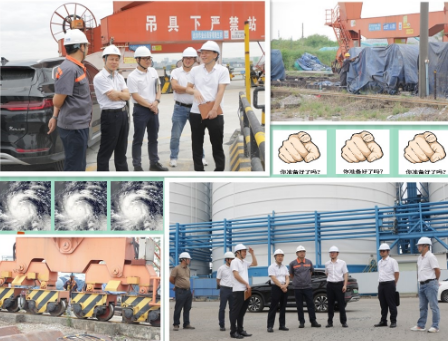 马金骑一行深入龙沙港码头前沿、货物堆场等重点区域,全面了解防台设施配置、防风防汛物资储备、人员值班安排等情况。
